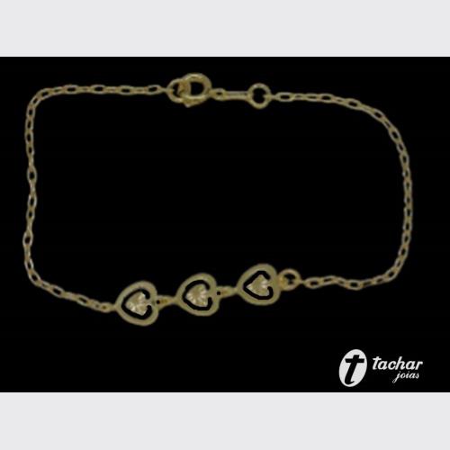 Folheados Ouro - Pulseiras - 18 CM - PL. FO 18CM 3 CORAÇÕES