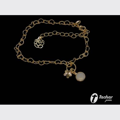 Folheados Ouro - Pulseiras - 18 CM - PL. FO 18CM FLOR E PEDRA TRANSPARENTE