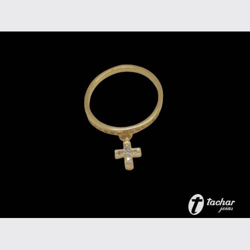 Folheados Ouro - Anéis - 16 - ANEL FO 16 PG CRUZ ZIRCONEAS
