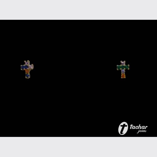 Folheados Prata - Brincos - 00 A 01 CM - BR. FO 06MM CRUZ COLORIDA