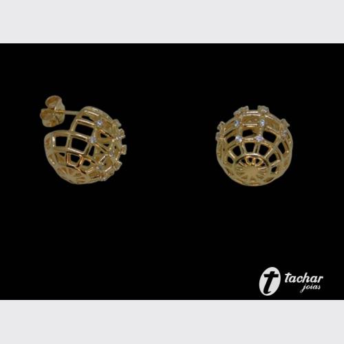 Folheados Ouro - Brincos - 01 A 02 CM - BR. FO 15MM BOLA VAZADA ZIRCONIAS