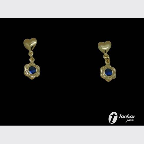 Folheados Ouro - Brincos - 02 A 03 CM - BR. FO 22MM PENDENTE CORACAO E FLOR AZUL