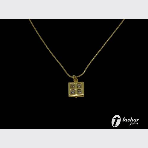 Folheados Ouro - Correntes - GARGANTILHAS - GAR. FO 45CM PG QUADRADO 04 ZIRCONIAS