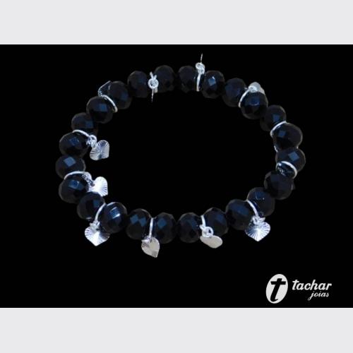 Folheados Prata - Pulseiras - 18 CM - PL. FP 18CM PEDRAS PRETA E CORACOES
