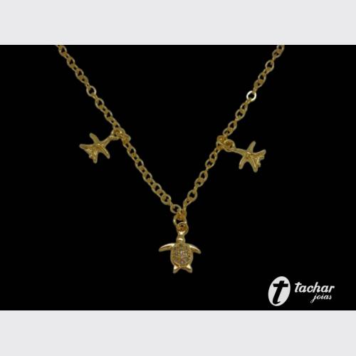 Folheados Ouro - Correntes - GARGANTILHAS - GAR. FO 37CM 02 ESTRELAS 01 TARTARUGA