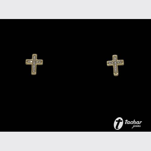 Folheados Ouro - Brincos - 00 A 01 CM - BR. FO 09MM CRUZ ZIRCONIAS