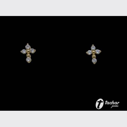 Folheados Ouro - Brincos - 01 A 02 CM - BR. FO 11MM CRUZ ZIRCONIAS