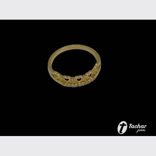 Folheados Ouro - Anéis - 20 - ANEL FO 20 CORACOES E LINHA ZIRCONIAS