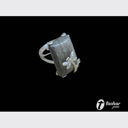 ANEL PRATA 20 FLOR E PEDRA GRANDE