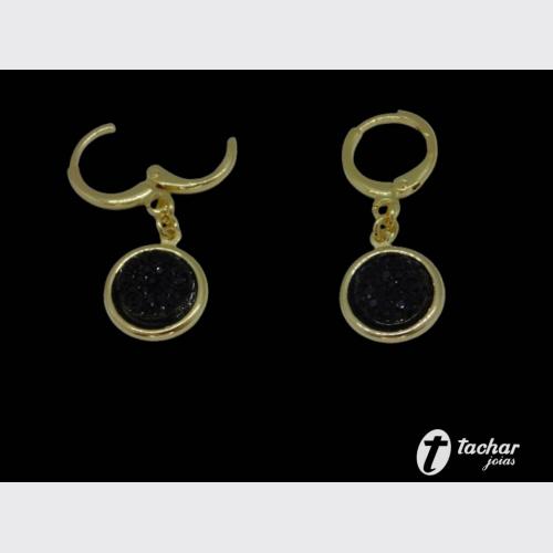 Folheados Ouro - Brincos - ARGOLAS - BR. FO 32MM ARGOLA PG REDONDO PRETO
