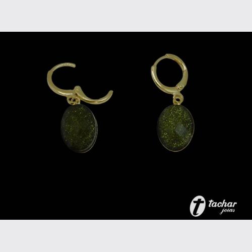 Folheados Ouro - Brincos - ARGOLAS - BR. FO 39MM ARGOLA PG OVAL VERDE MESCLA