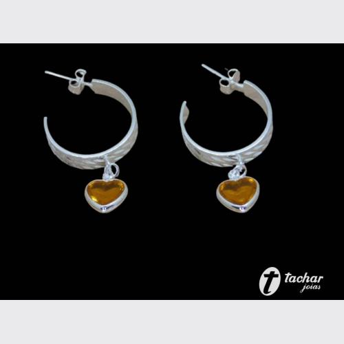 Folheados Prata - Brincos - ARGOLAS - BR. FP 32MM MEIA ARGOLA PG CORACAO AMARELO