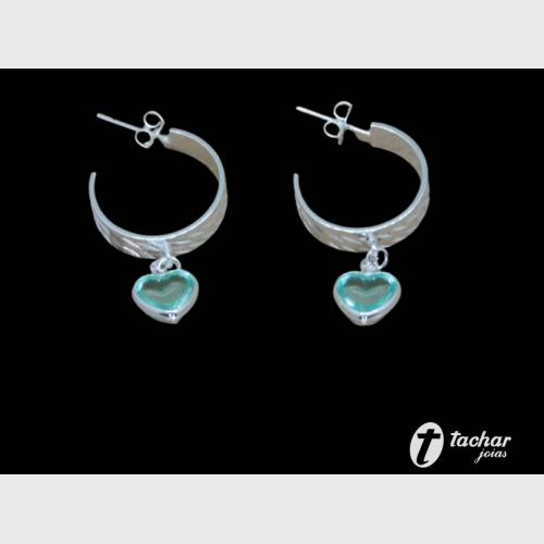 Folheados Prata - Brincos - ARGOLAS - BR. FP 32MM MEIA ARGOLA PG CORACAO VERDE